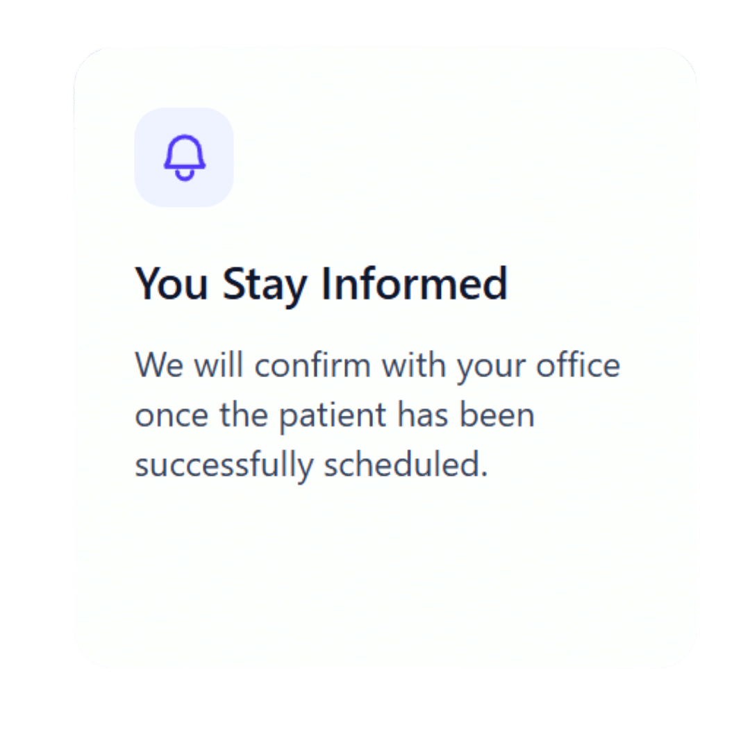 Our dedicated intake team handles patient scheduling and insurance verification, saving your office hours of administrative work.